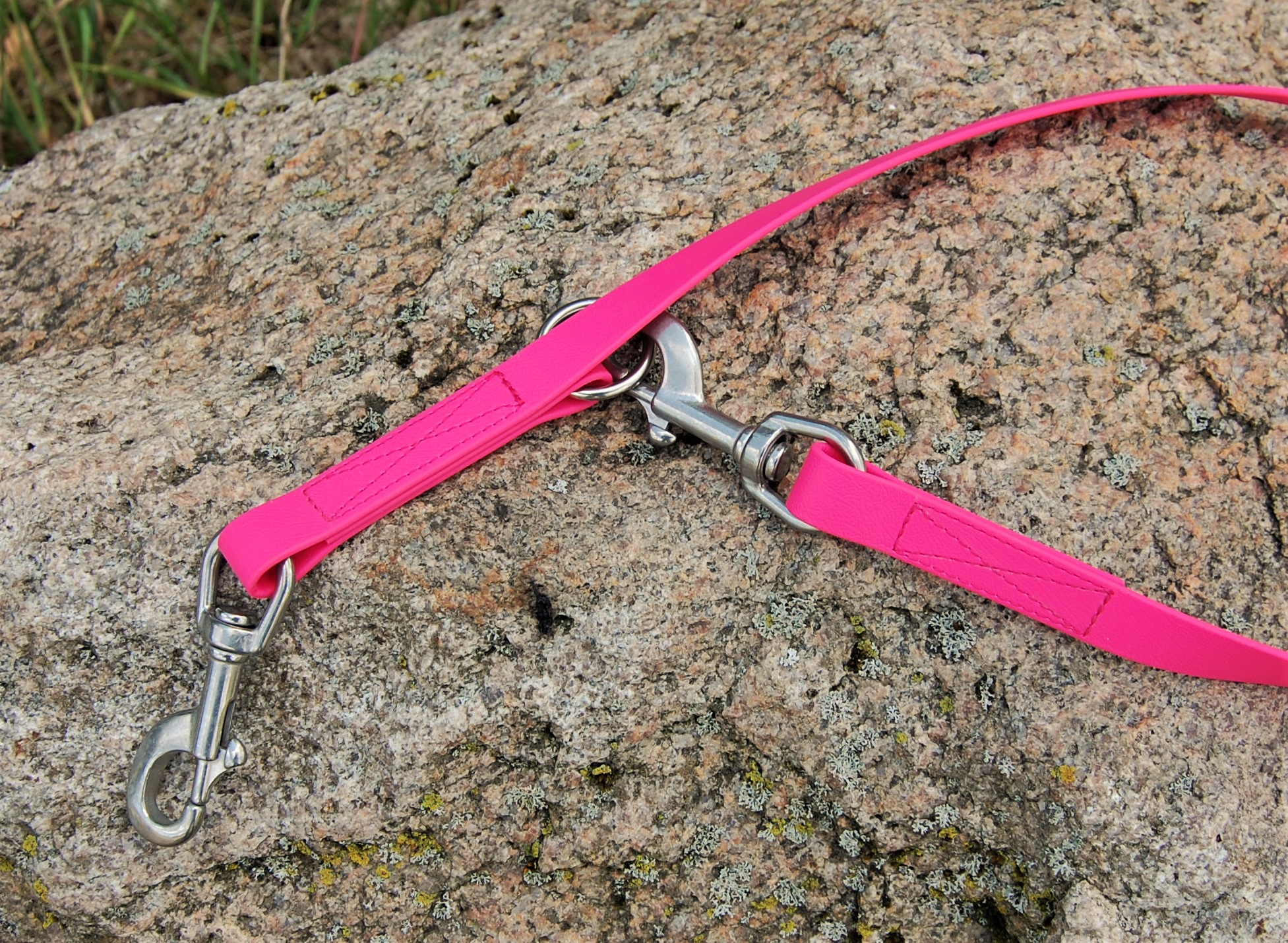 Die Leine ist hochwertig genäht und zusätzlich kaltverschweißt.. In der Farbe magenta, Steppung ebenfalls in magenta, Die Breite der Leine ist 19 mm.