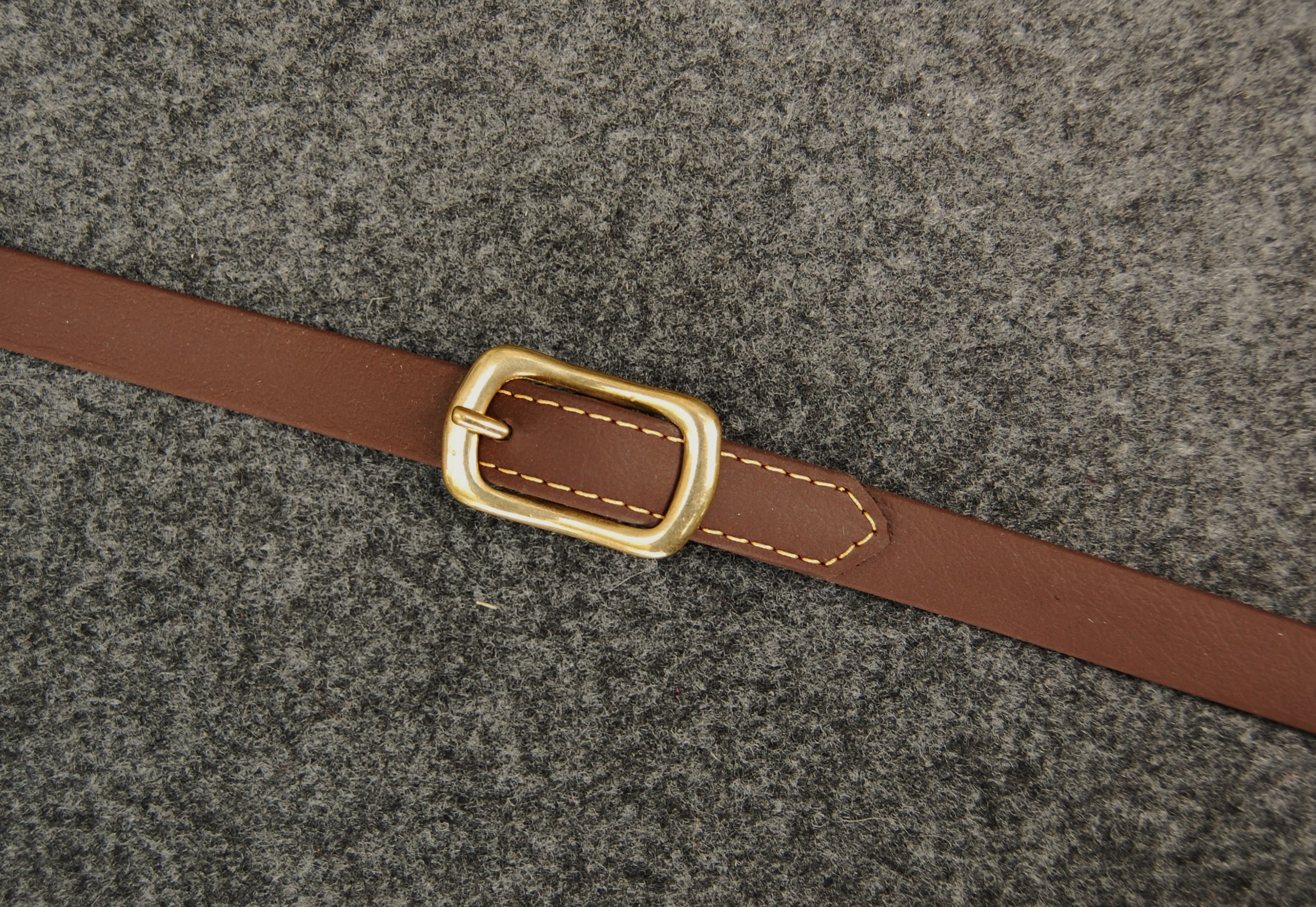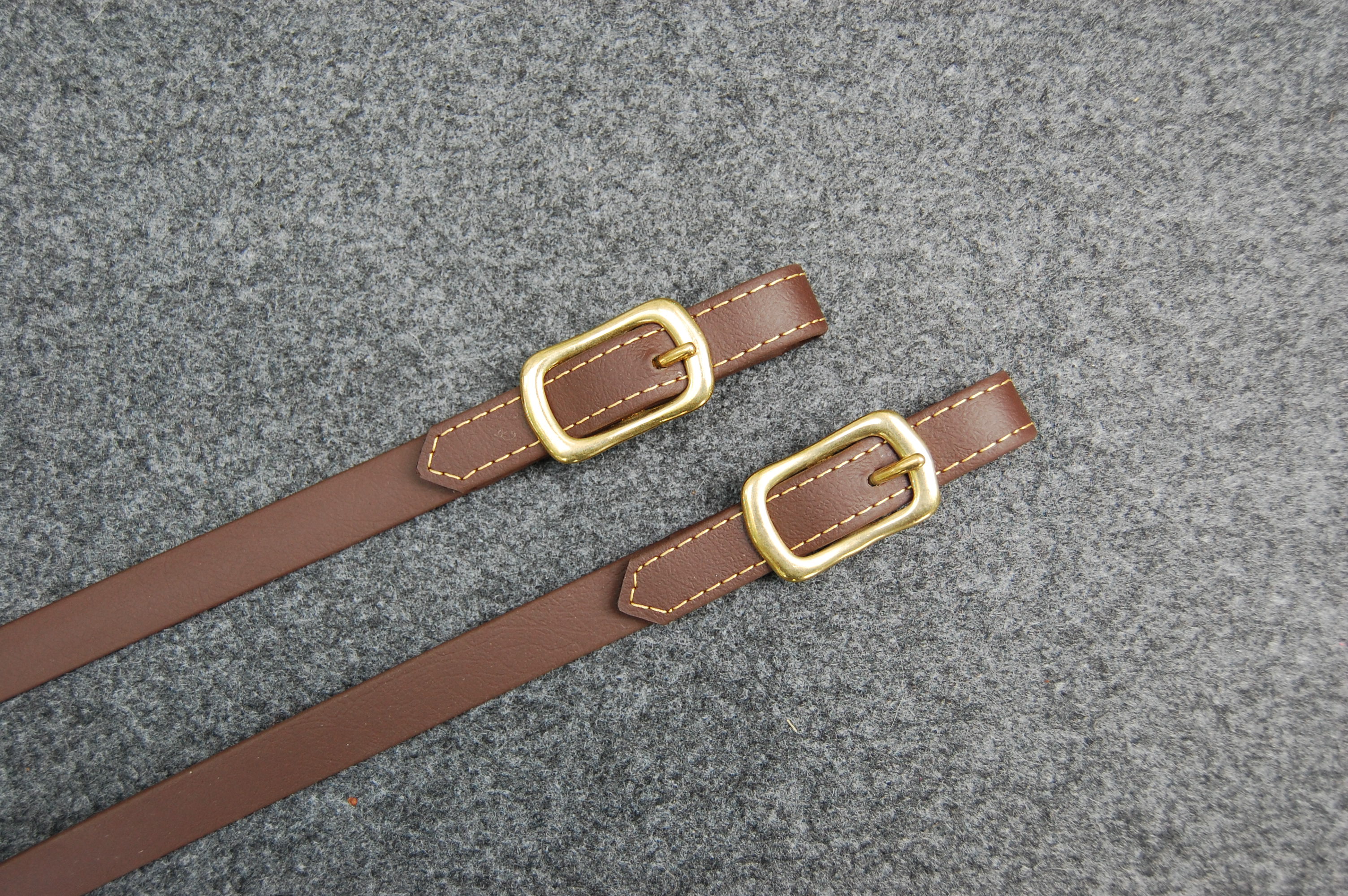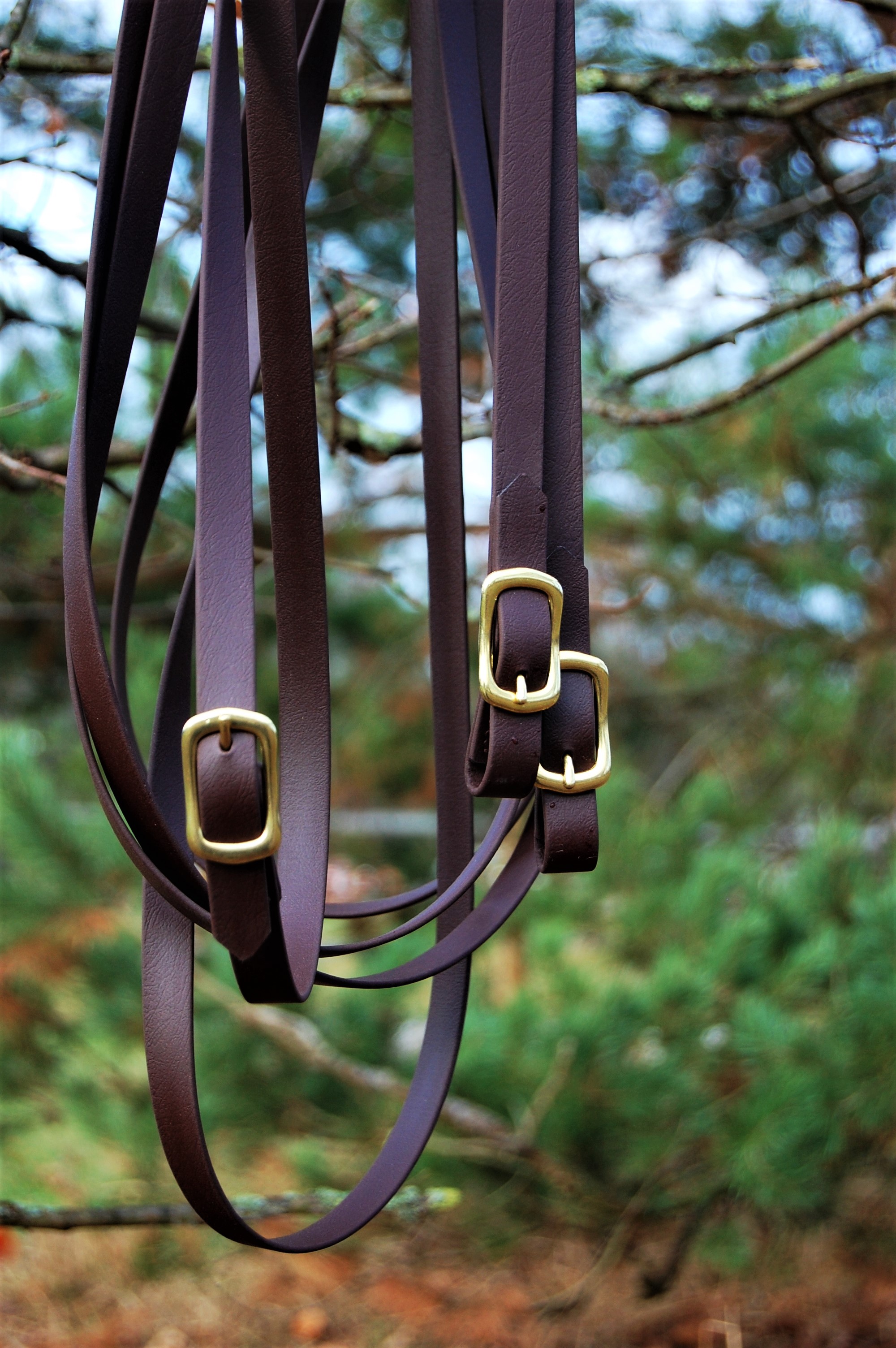 Langzügel aus Biothane in 16 mm Breite und 6,40 m Länge. Farbe dunkelbraun mit Messingschnallen. Die Zügel sind durch eine Schnalle in der Mitte teilbar. Vorne sind die Zügel zum Einschnallen. Mit messingfarbigen Kontrastnähten.