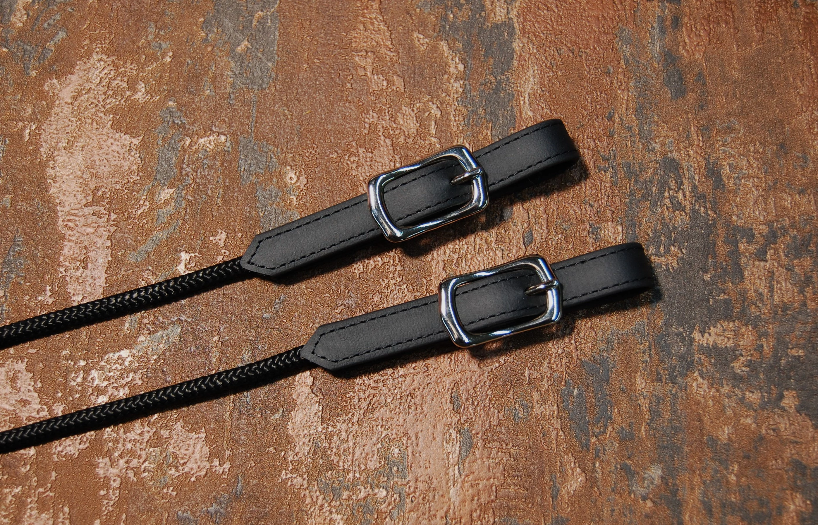 Der vordere Bereich ist aus glatter, hochreissfester Reepschnur, damit die Longe widerstandsfrei durch die Ringe gleiten kann. Zum Einschnallen ins Gebiss sind vorne Schallen vernäht. Der hintere Teil ist aus Biothane. Die Longe ist in der Mitte teilbar. Rostfreie Schnallen in silber ( massiv Messing vernickelt ) .